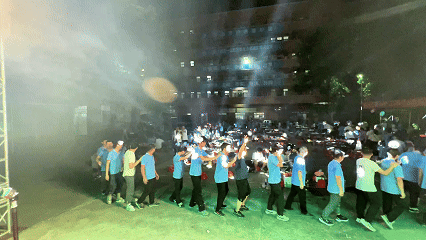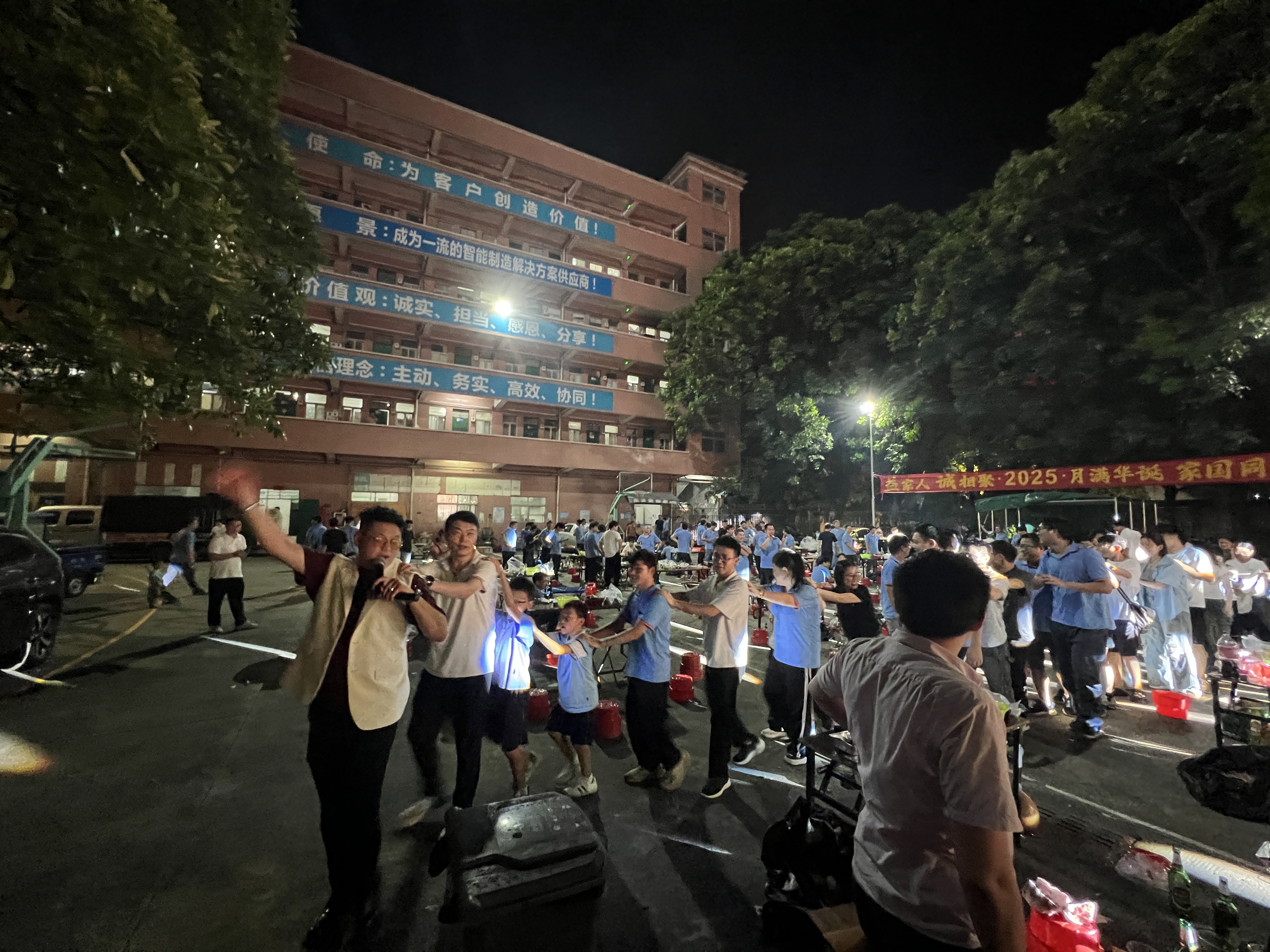 夜色漸濃,情誼愈深。隨著主持人一聲“開小火車?yán)玻?rdquo;,益誠家人們在笑聲和歡呼聲中迅速組成一條“長龍”,大家搭著肩,蜿蜒穿梭活動現(xiàn)場,載著喜悅奔向月光。